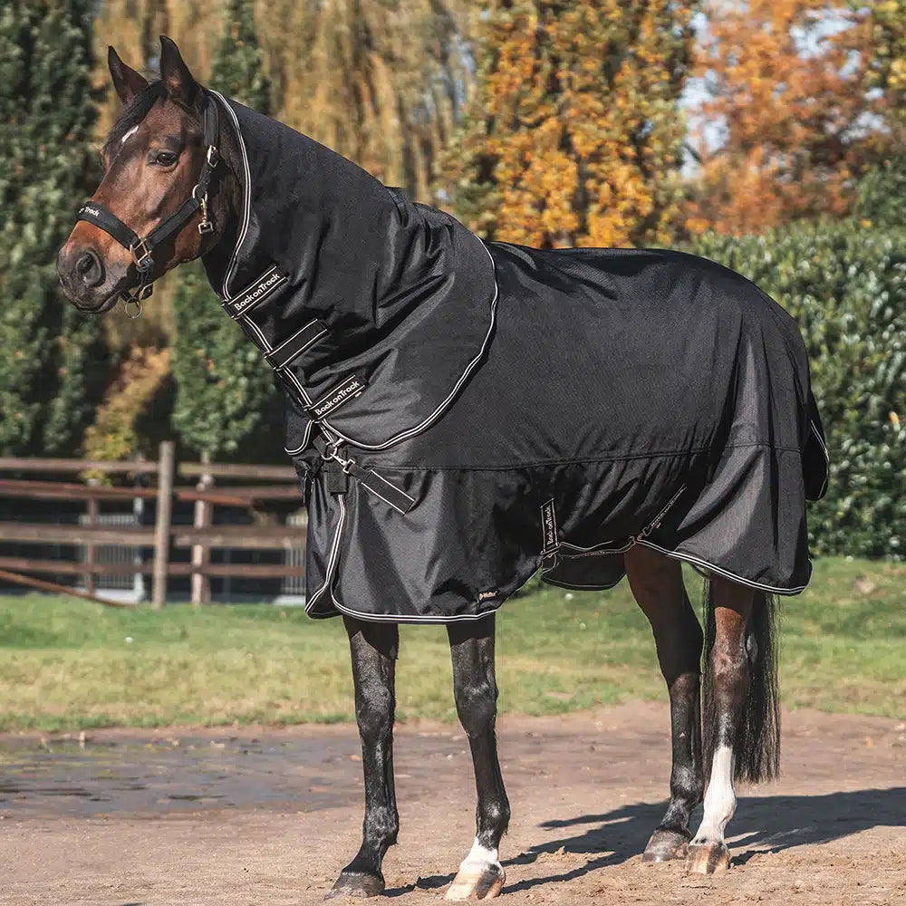 Discover the enduring comfort and therapeutic benefits of the Back on Track Obsidian 150g Turnout Blanket. Crafted with a sturdy 1650D waterproof and breathable outer, this turnout is your ally against harsh weather conditions. It seamlessly pairs with our array of Rhyolite Liners that are available in 100g and 200g, allowing for varied layering to meet the changing demands of the seasons. A single blanket offering multiple options. Comes with a detachable hood.