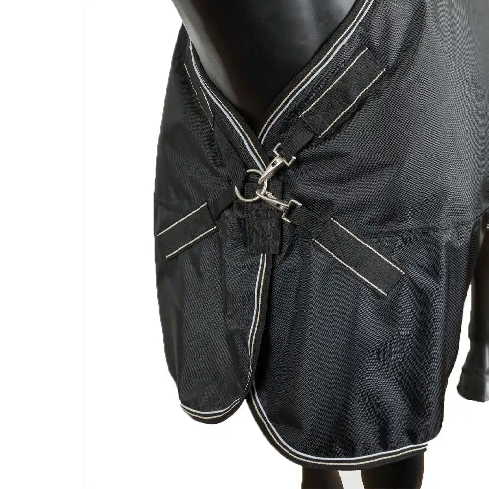 The interior of the Obsidian Turnout Blanket is lined with an anti-static, anti-bacterial, and shine-enhancing lining, ensuring a gentle touch against your horse’s skin, keeping it healthy and vibrant. The wipe clean tail cord is a thoughtful addition for easy maintenance.