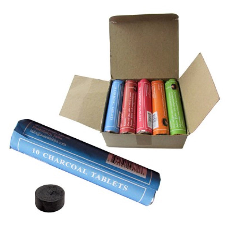 In the past, many aromatic substances were first discovered when they were tossed on to a smouldering fire. Charcoal tablets are a modern variation on this ancient method. Use this modern day method to burn a variety of non-combustible materials such as herbs, woods and resin Charcoal is smokeless and odorless when burned and is not made with chemical additives so it will not detract from the incense burning experience.These tablets are concave on one side to allow the burning material to be placed inside.
